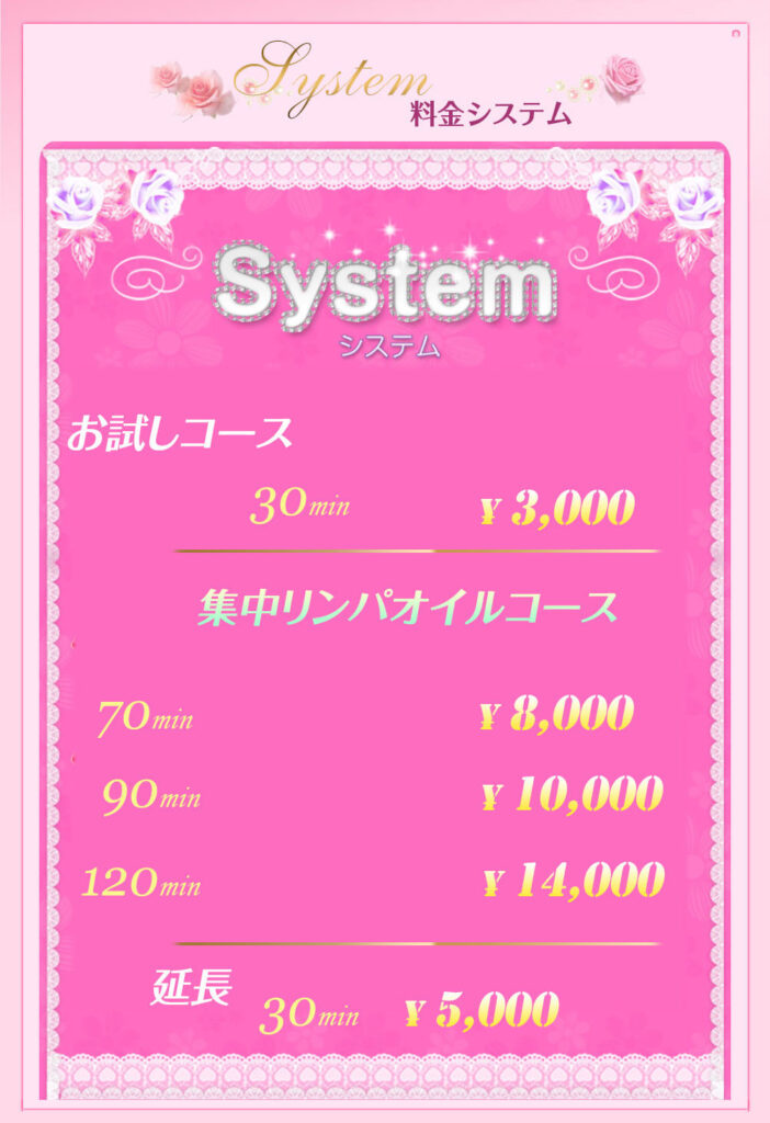 ※お客様都合による遅刻は、いかなる理由であっても、他のお客様へのご迷惑となり得るため、コース時間をそのまま削らせて頂きます。予めご了承くださいませ。